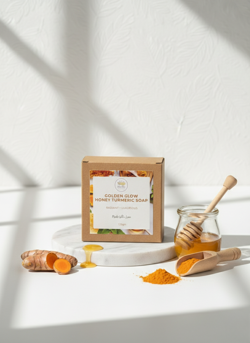 Golden Glow Honey Turmeric Soap is a gentle herbal soap crafted with the natural goodness of honey and turmeric. This powerful combination helps cleanse the skin deeply while providing nourishment and natural glow.