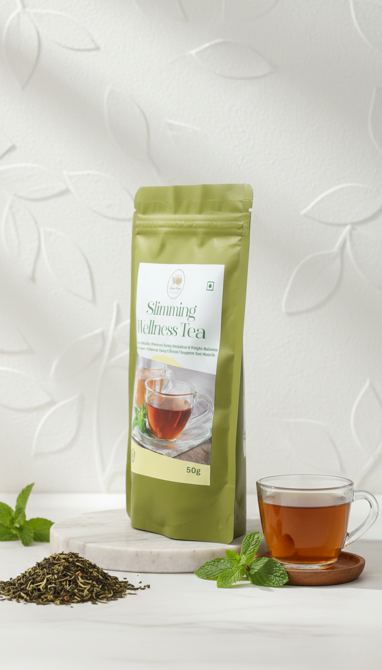Slimming Wellness Tea is a carefully crafted herbal blend made with natural ingredients known for supporting metabolism and promoting overall wellness.